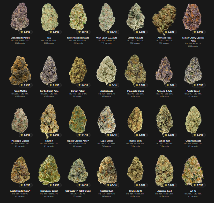 A hozam, THC-tartalom és ízprofil valós, megélt tapasztalatokból származik, így a toplista hiteles képet ad arról, mi működik a valóságban is.