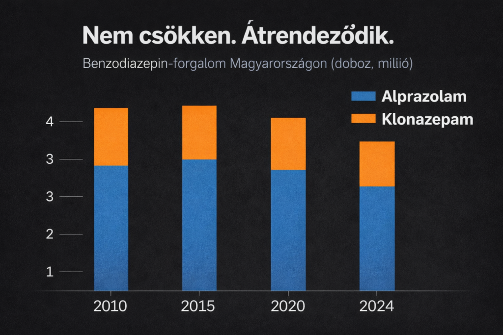 A hazai gyógyszerhasználati kultúra egyik legárulkodóbb sajátossága, hogy a benzodiazepin-forgalom több mint 80 százaléka alacsony, 0,25–0,5 mg-os dózisú készítményekből áll. Klinikai értelemben ez nem „durva nyugtatózás”, hanem tartós, mikrodózisú megküzdés.